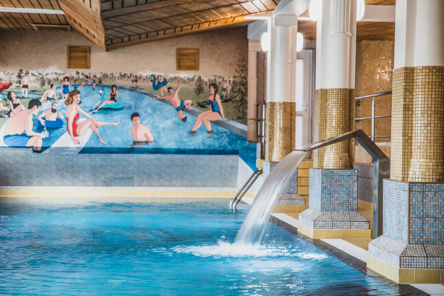 Schwimmen Sie im Pool, genießen Sie die Sprudel-Hydromassage im Whirlpool und erleben Sie tiefe Entspannung